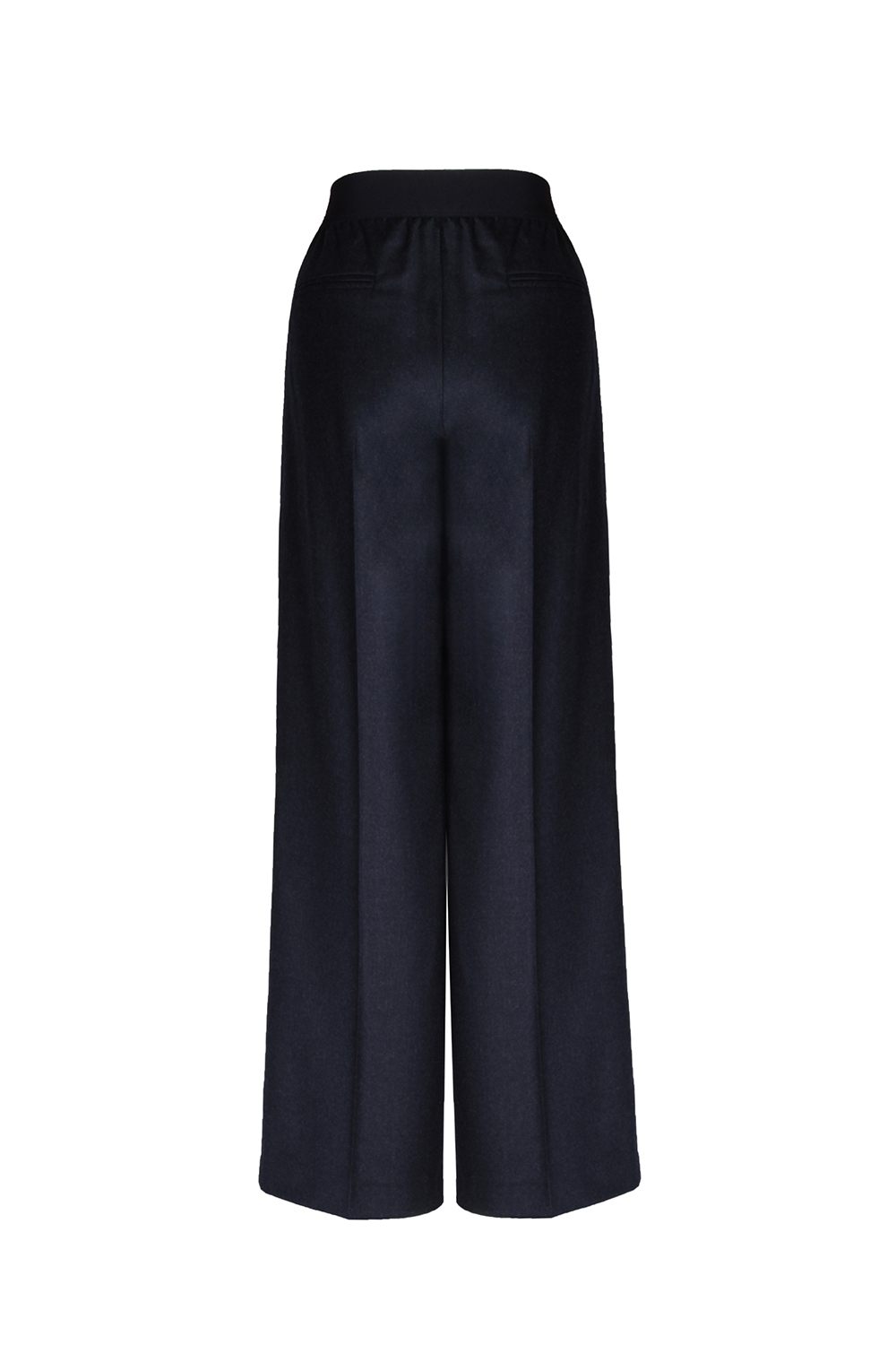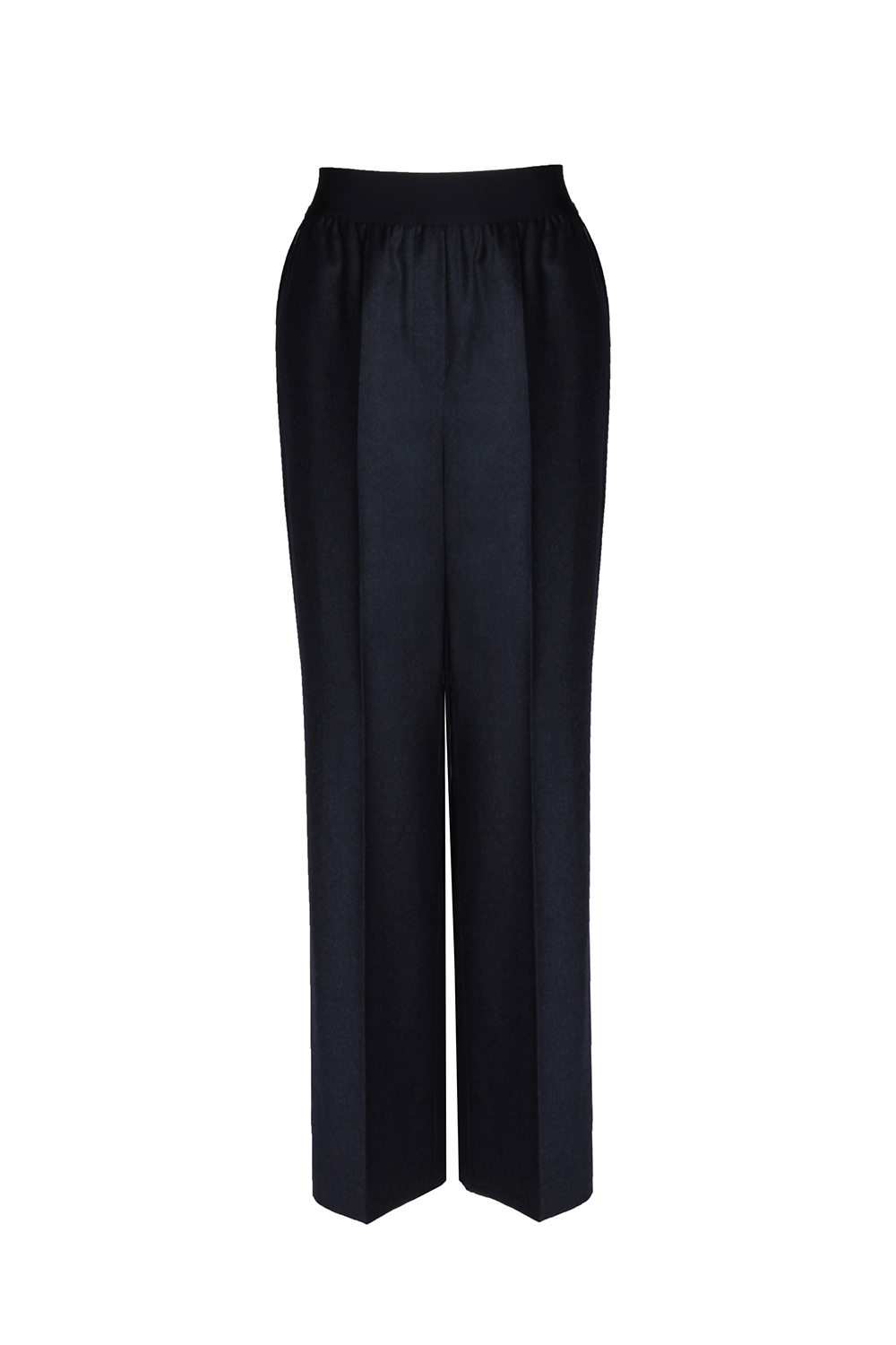 Синие прямые брюки  -  модель, которую легко встроить и в формальный образ, и в расслабленный casual. Натуральная шерсть может быть чувствительной для кожи, поэтому мы дополнили изделие шелковистой подкладкой. Заутюженные стрелки по переду и спинке вытянут силуэт, а эластичный пояс создаст дополнительный комфорт и подчеркнет талию.