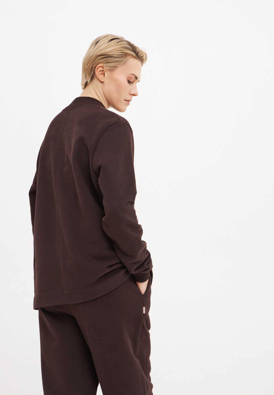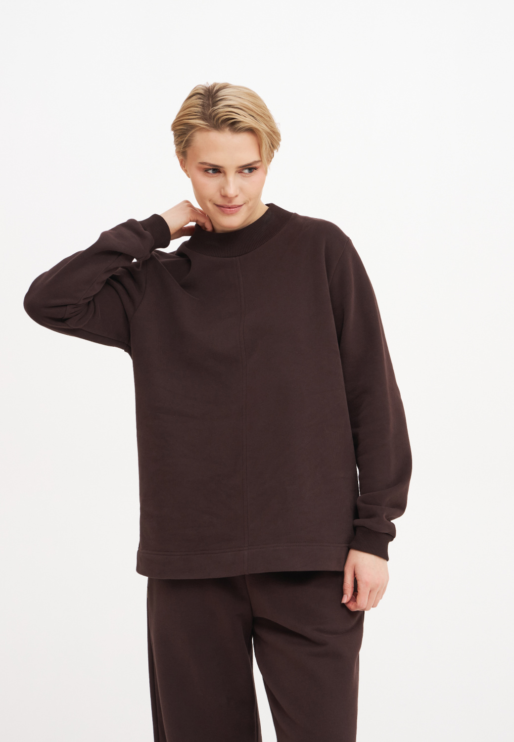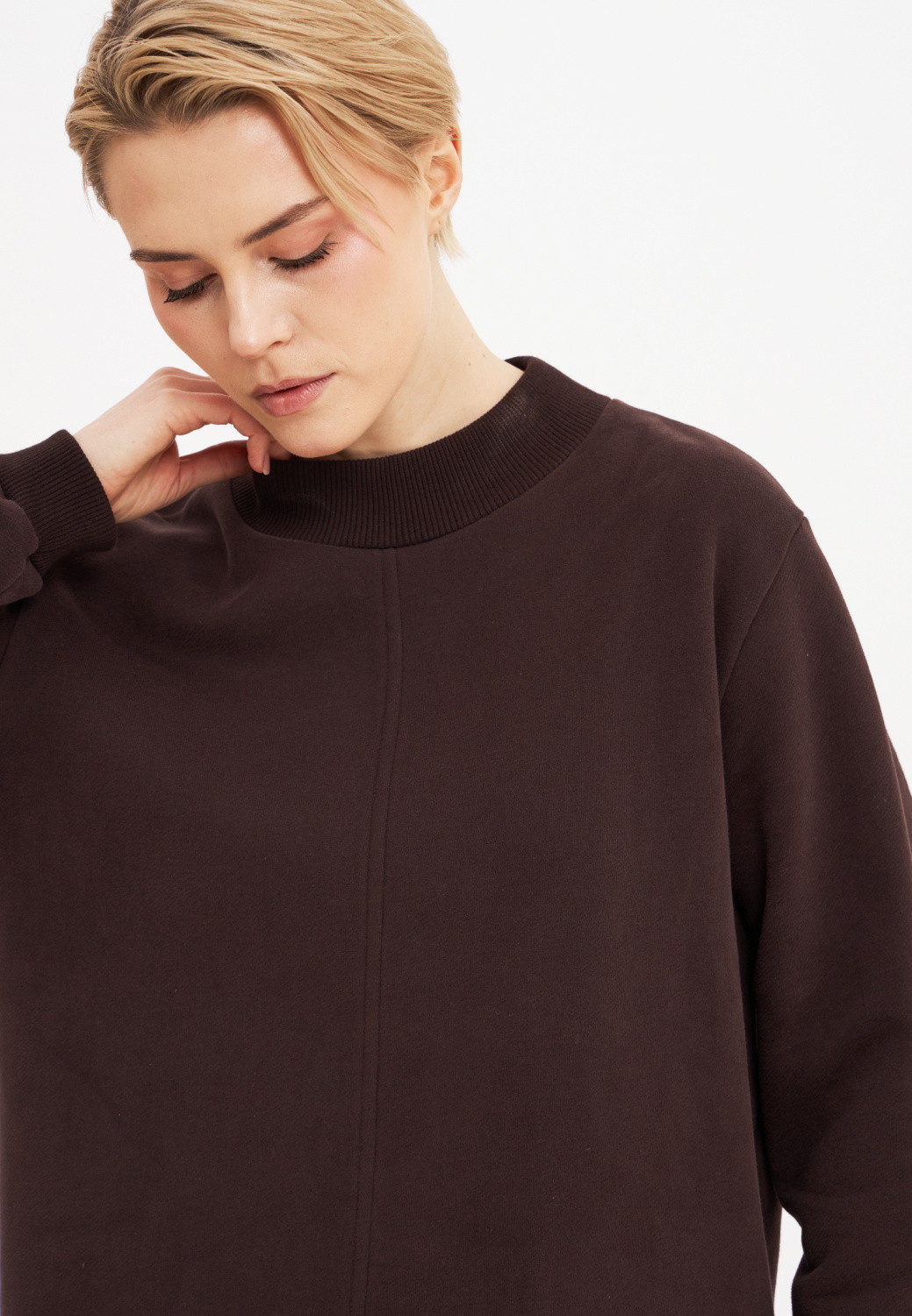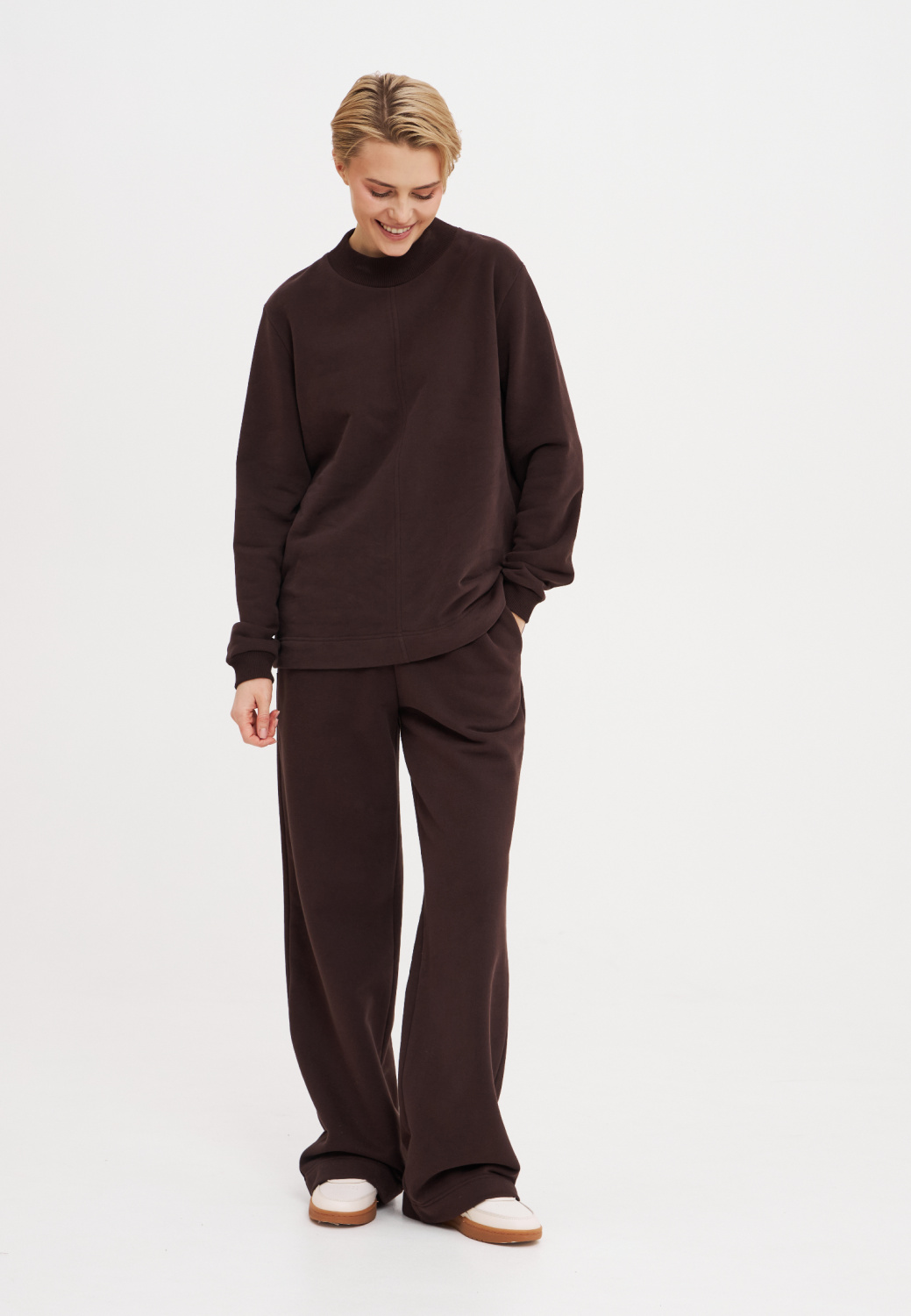 Свитшот свободного кроя отлично впишется в повседневный гардероб и станет любимой вещью для создания неформальных и расслабленных образов. Изделие выполнено из футера 3-х нитки с велюровым эффектом, что делает его  приятным на ощупь и комфортным в носке. Для создания монохромного образа сочетайте с брюками из комплекта.
