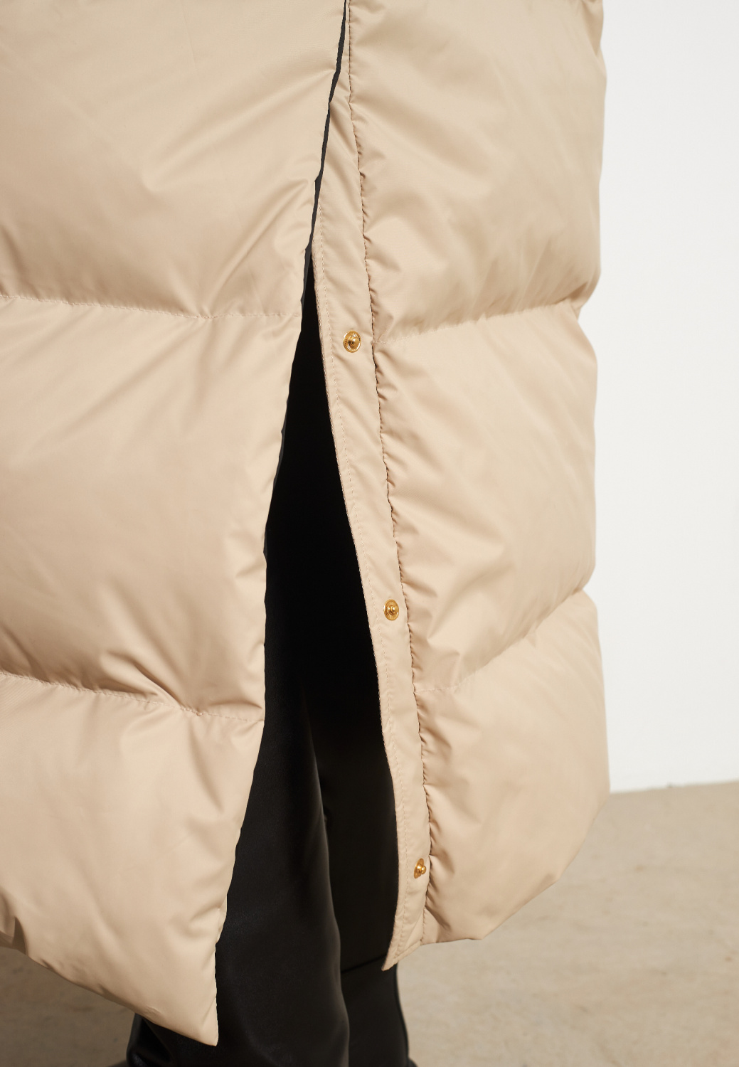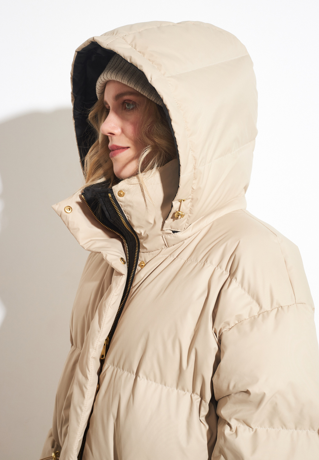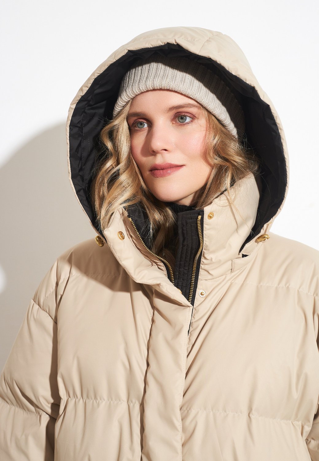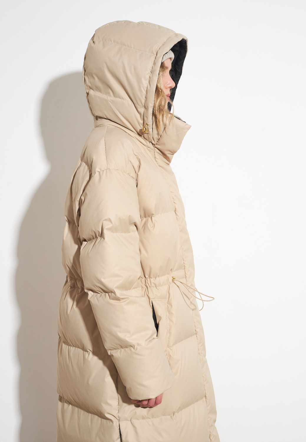 Длинный женский пуховик с горизонтальной стёжкой - базовая вещь в зимнем гардеробе. Контрастная внутренняя отделка делает изделие практичным в носке. Воротник стойка надежно закрывает шею, а кулиса на талии позволяет варьировать силуэт от прямого до более женственного. Пуховик имеет натуральный наполнитель из гусиного пуха, распределенного в специальные пакеты, защищающие наполнитель от миграции.